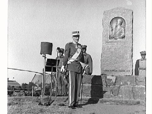 Prins Carl inviger monumentet över danske fältherren Daniel Rantzau den 26 juni 1938. Prinsen står vid minnesstenen med några militärer i bakgrunden. På plats fanns också prins Harald av Danmark. Utöver att vara till åminnelse av Ranzau, som stupade på denna klippa i striden om Varbergs fästning den 11 november 1569, var tanken också denna som prins Carl uttryckte vid avtäckningen: "Men måtte också vår gemensamma minnessten i alla tider kunna bära vittnesbörd om att fred råder och alltid skall råda mellan Danmarks och Sveriges folk."