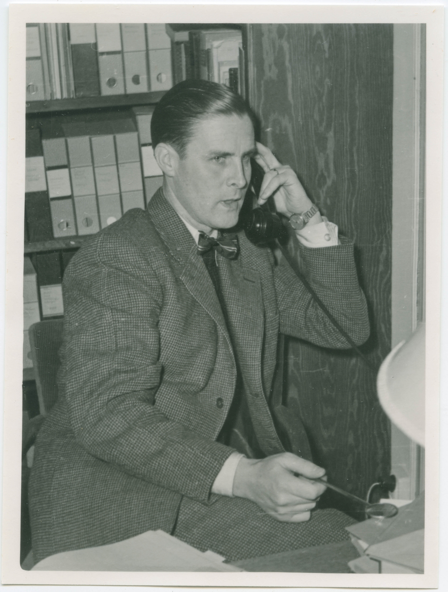 Porträtt på Stig August Oscar Stenström.Född i Göteborg den 12 april år 1911. Fil. doktor. Amanuens vid Jönköpings läns museum 1 maj år 1950.