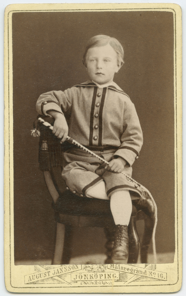 Porträtt på Hans Strand. Född 1872 i Habo och dog i Äng år 1923.