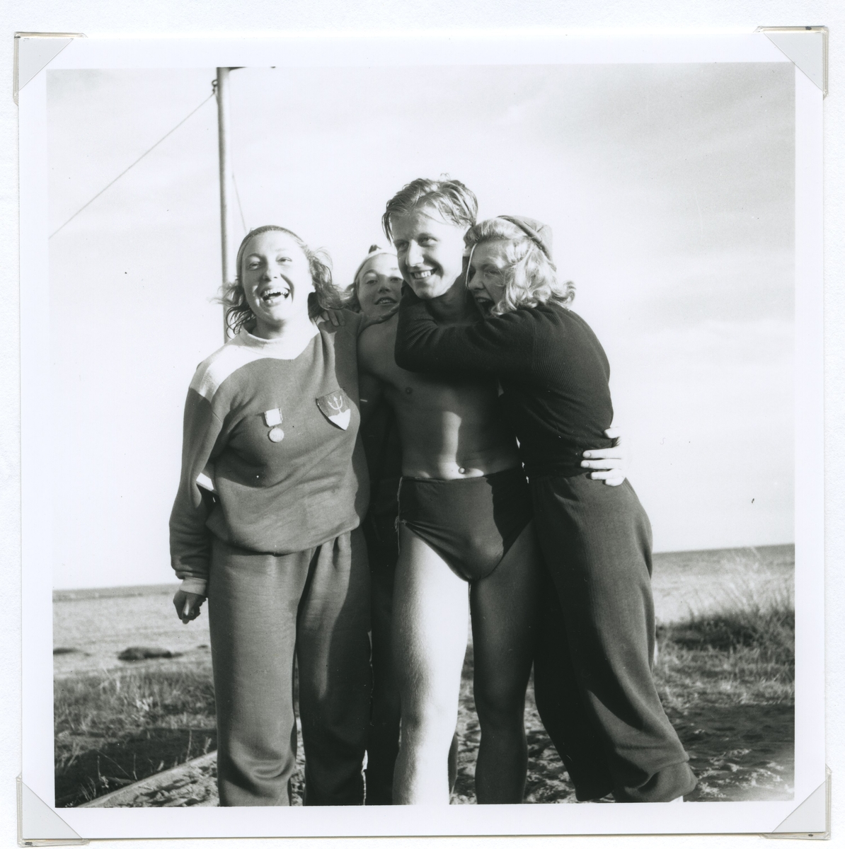Tre deltagare från SM i simning, som 1946 hölls vid Långviksbadet i Kalmar.