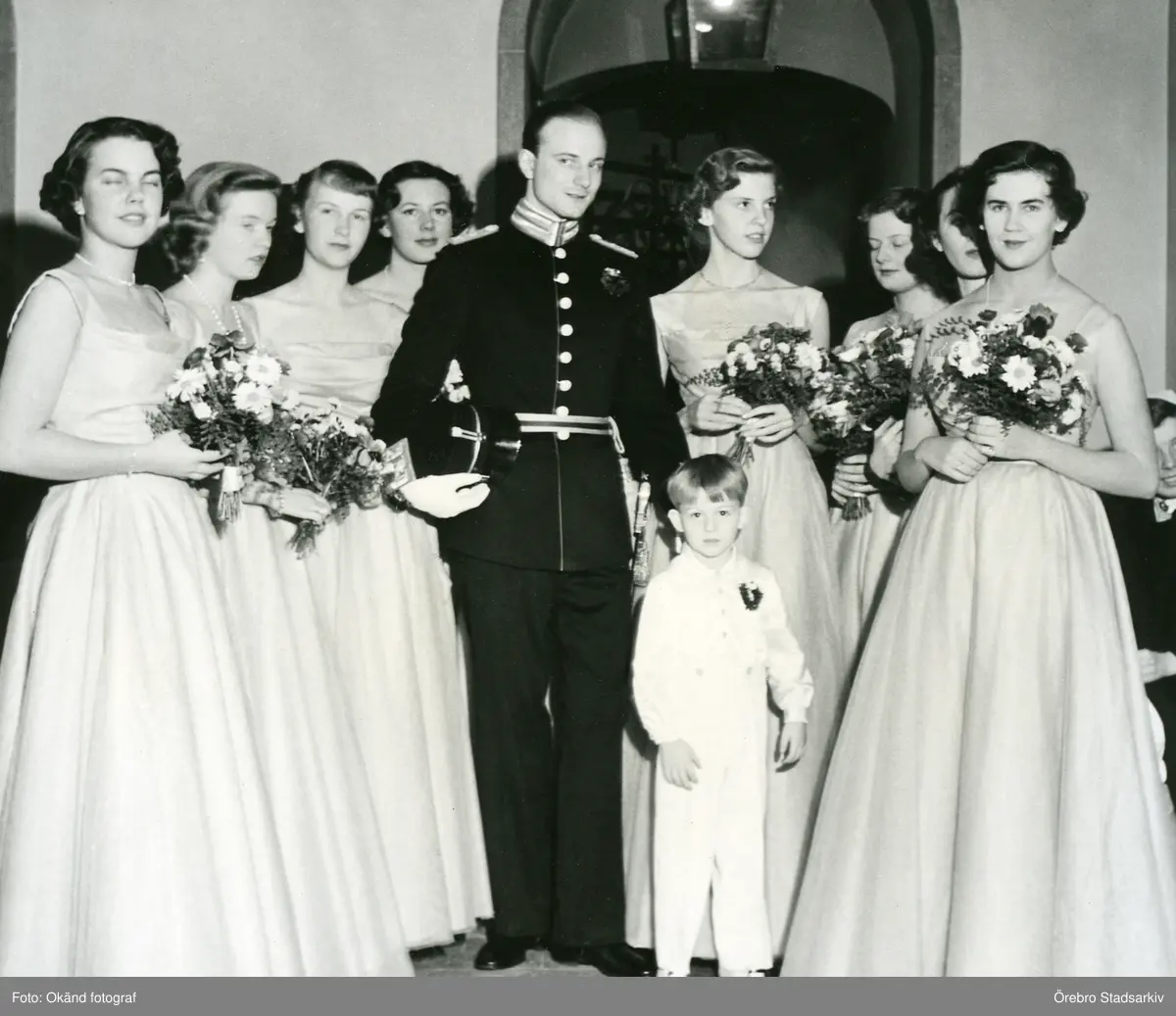 Brudpar och tärnor, ca 1950