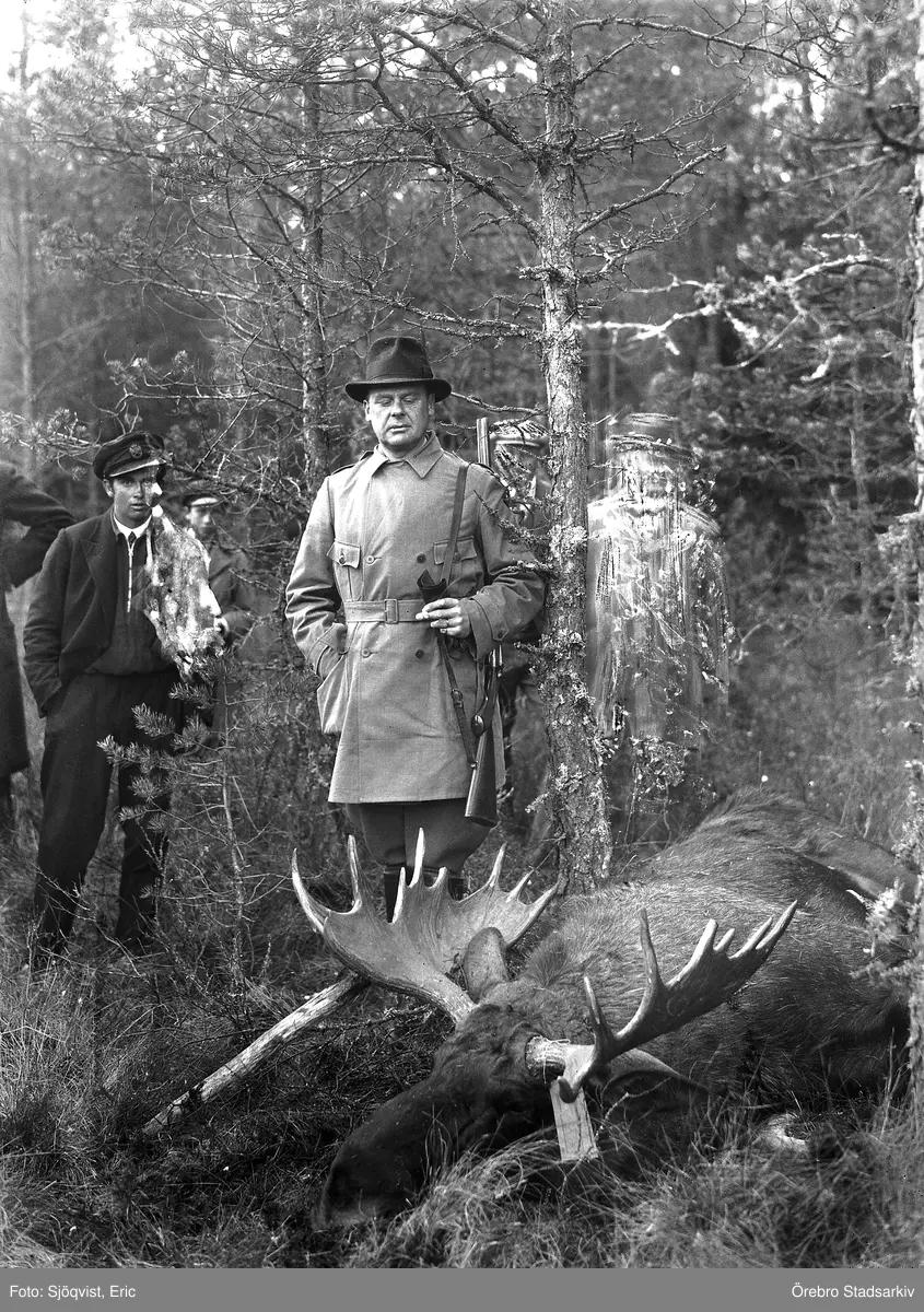 Konungens adjutant vid nedlagd älgtjur, 1940-tal