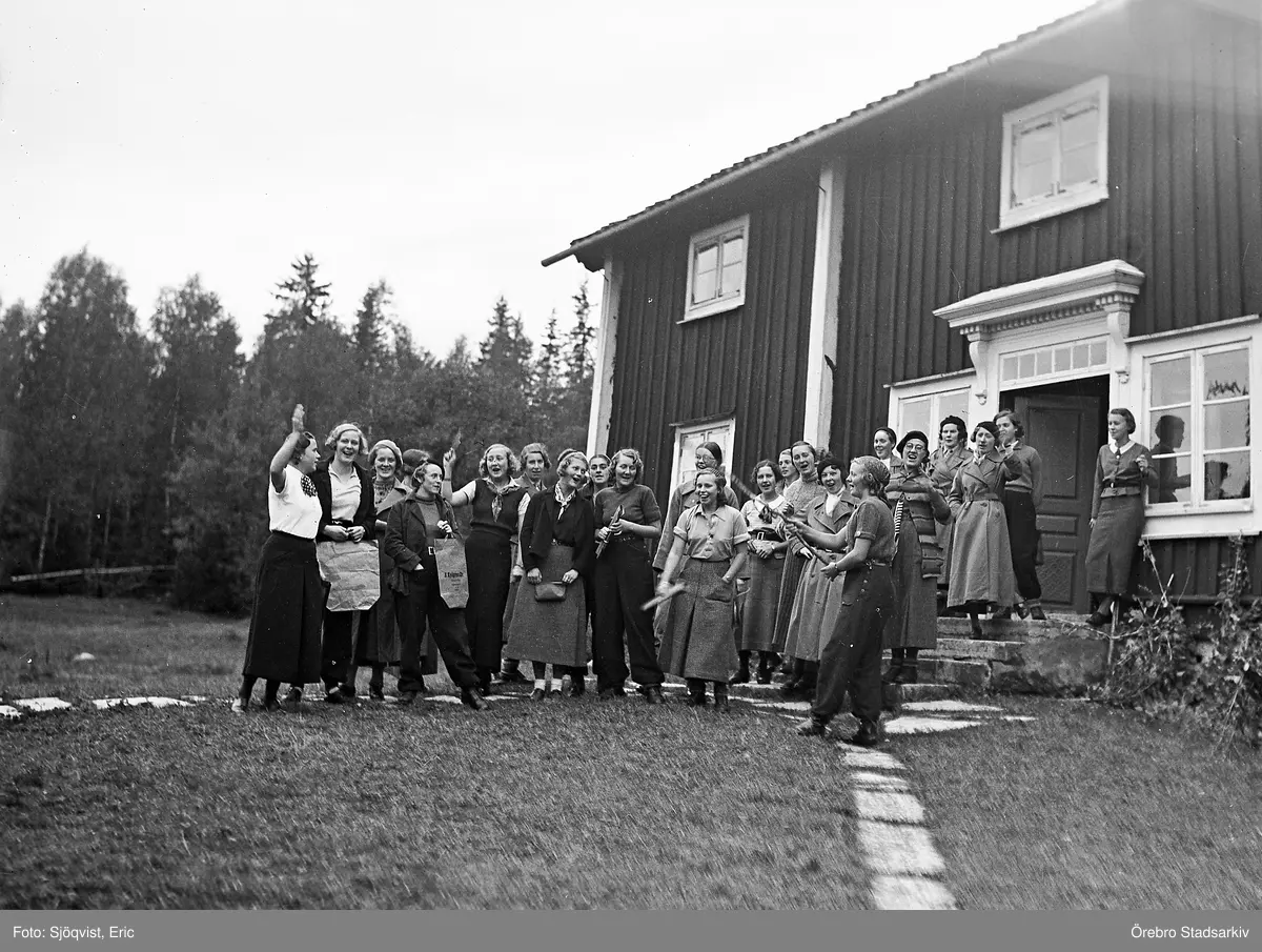Gymnastikflickor samlade på träningsläger, 1930-tal