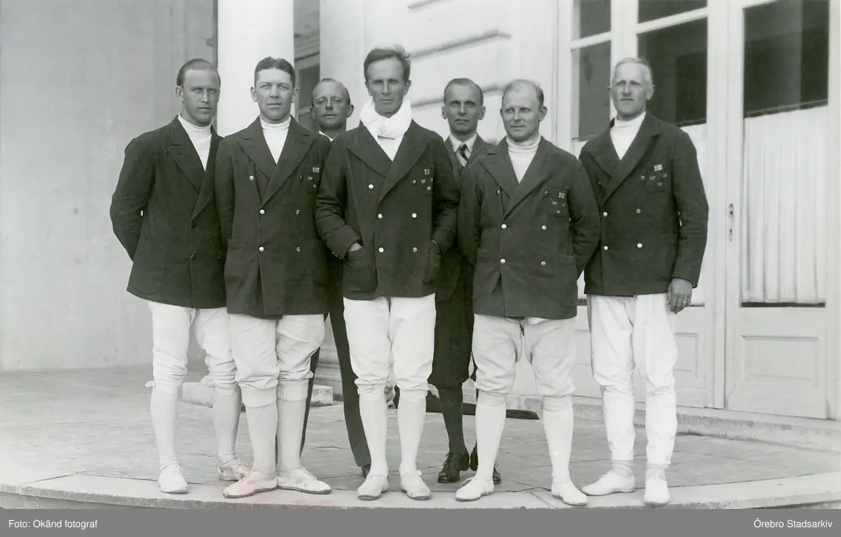 Svenska fäktare med tre kronor på jackfickan, 1920-talet