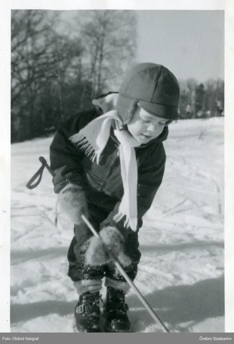 Carl Gripenstedt leker i snön med skidstav, 1959