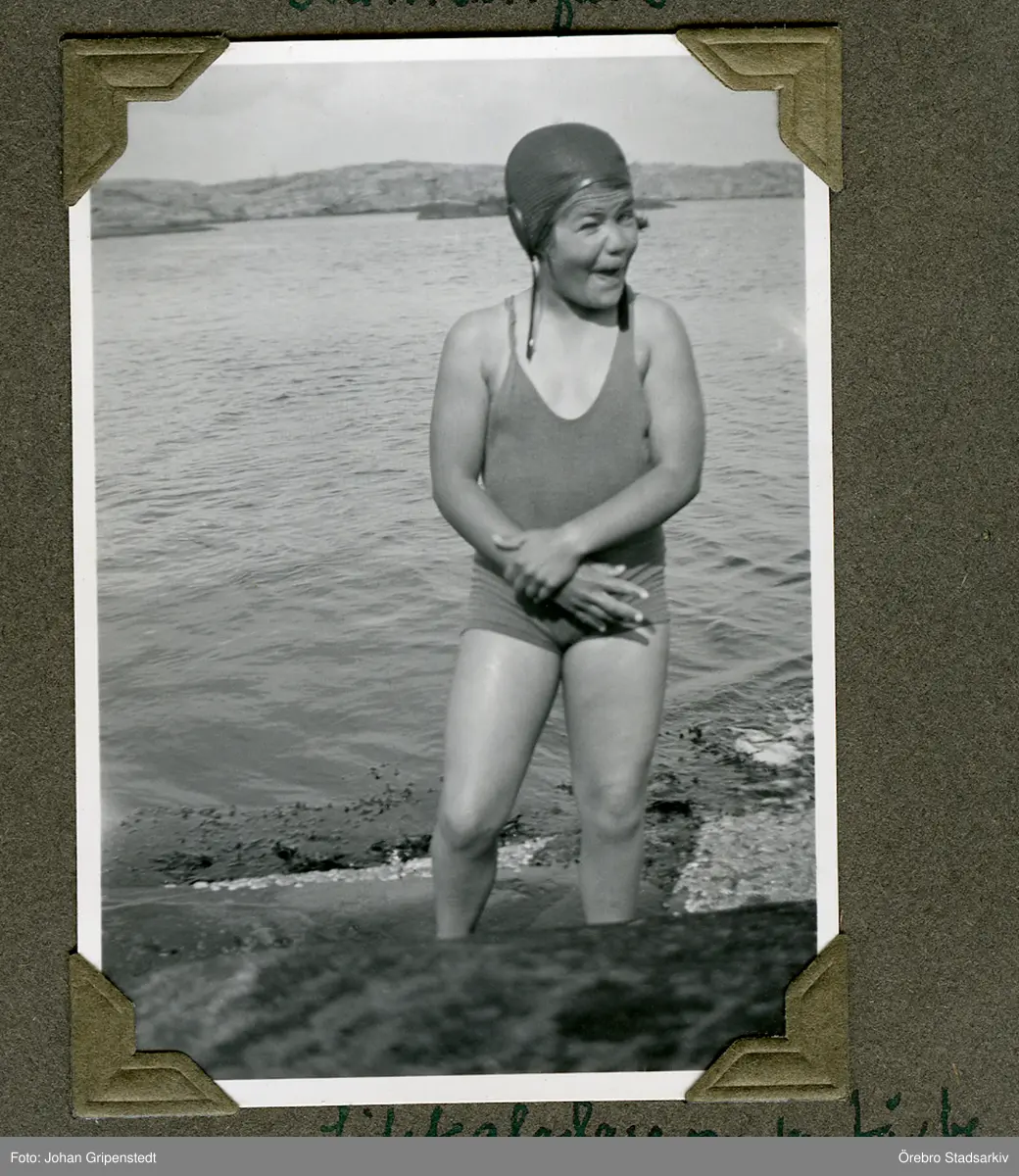 Blöt flicka stiger upp på klipporna i Smögen, 1936