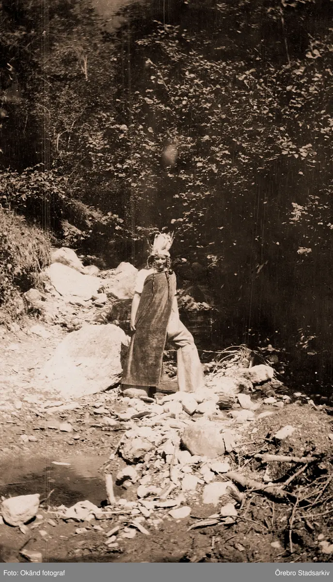Elev i indiankläder vid bäck, 1918