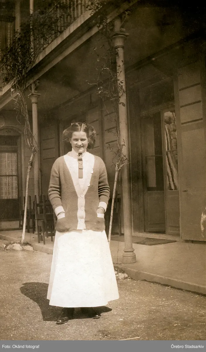 Fröken Nordenfalk utanför pensionatet, 1918