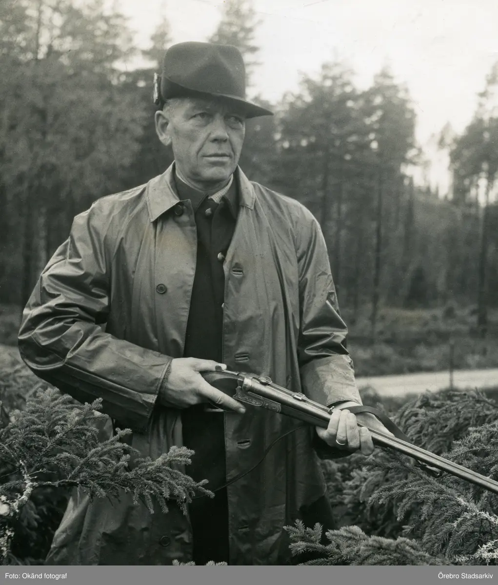 Carl Gripenstedt med hagelbössa i Brevenskogarna, ca 1940