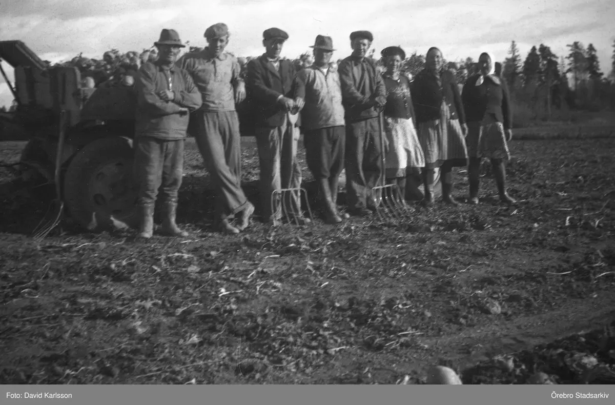 Skörd av kålrötter i Karlstorp, 1940-tal
