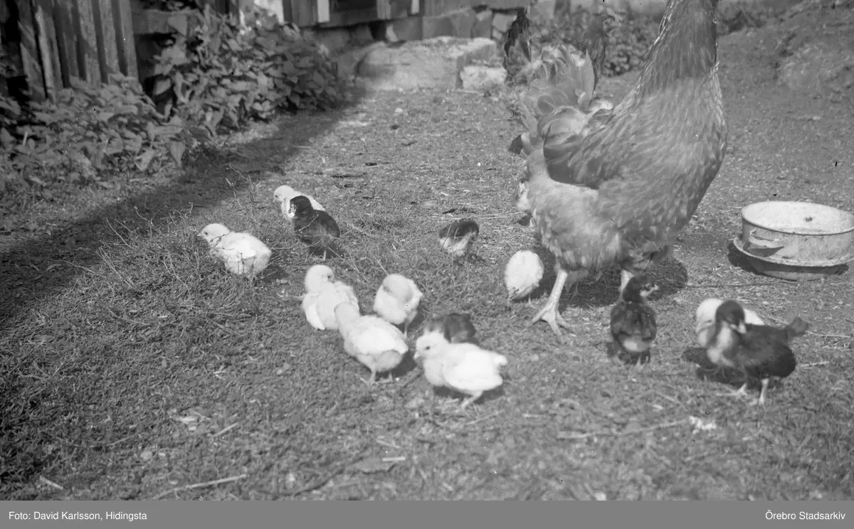 Höna med kycklingar i Karlstorp, 1950-tal