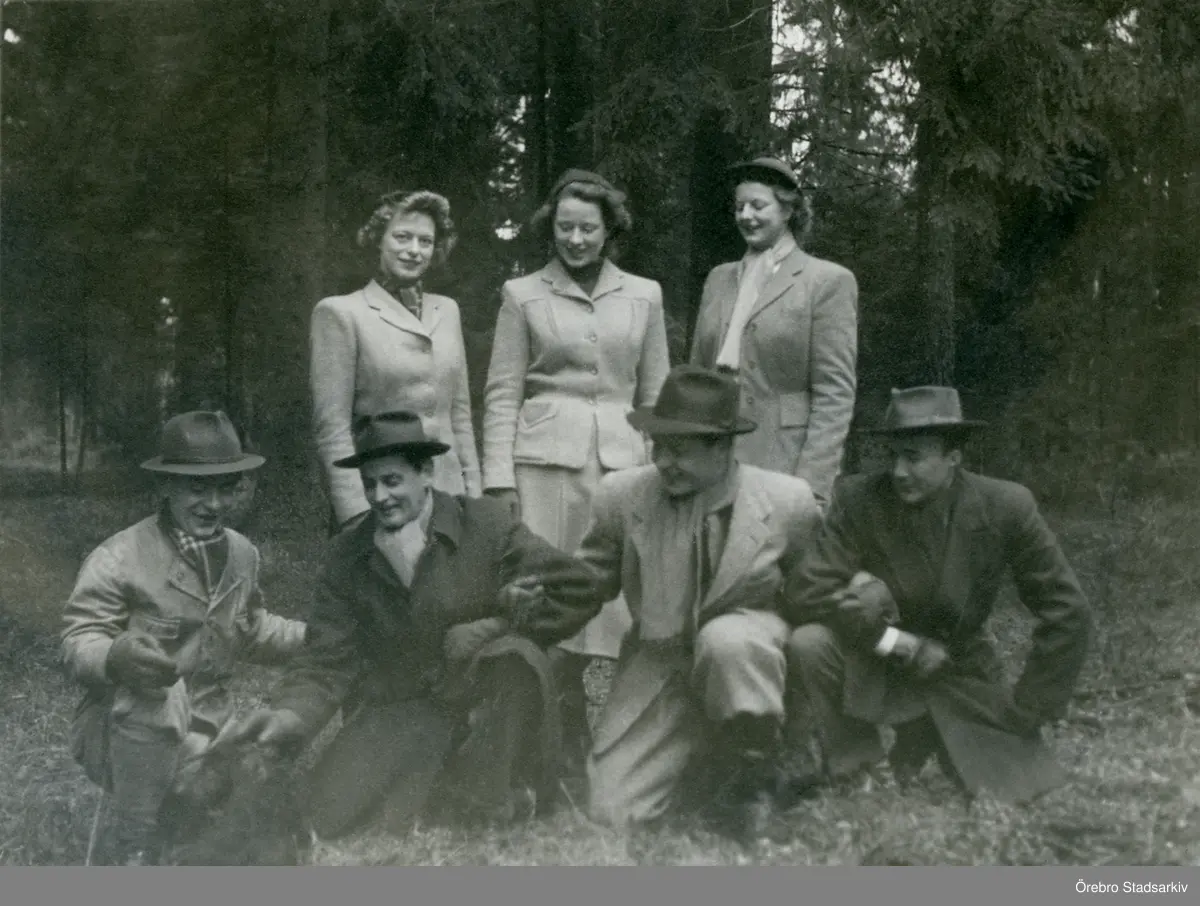Ett glatt gäng i skogen i Bystad, 1939