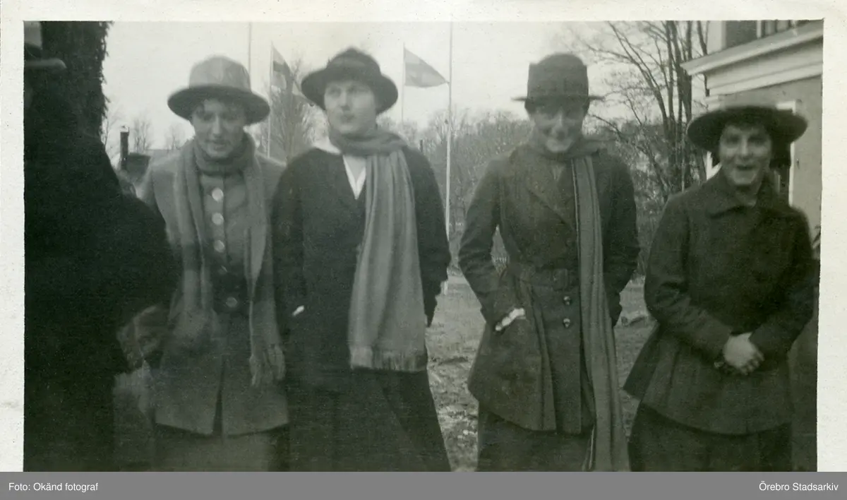 Fyra damer på promenad vid Färna herrgård, ca 1920