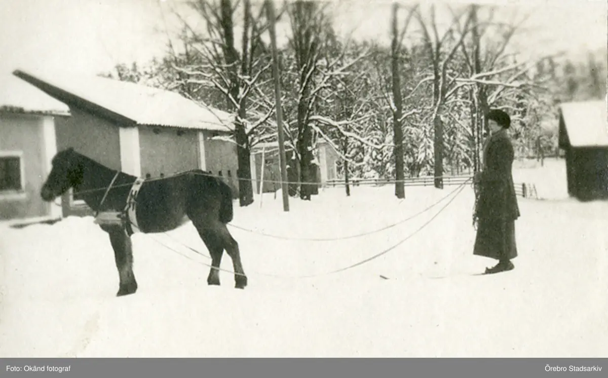 Tolkning efter häst vid Färna herrgård, ca 1920