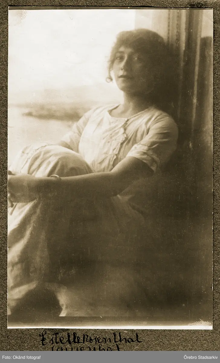Estelle Rosenthal sitter i ett öppet fönster , 1918