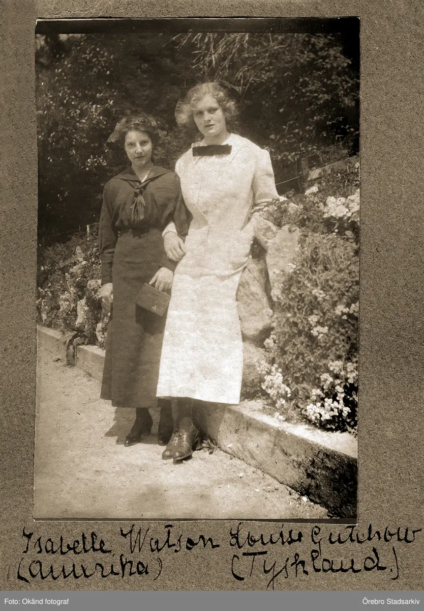Isabelle Watson och Louise Gutchow arm i arm på promenad, 1918