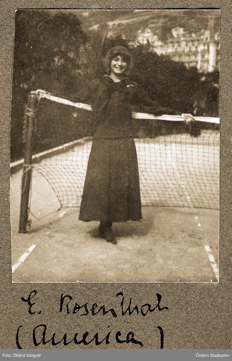 Estelle Rosenthal vid tennisnätet, 1918