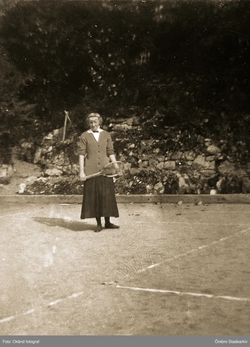 Lizzie väntar på sin motspelare på tennisbanan, 1918