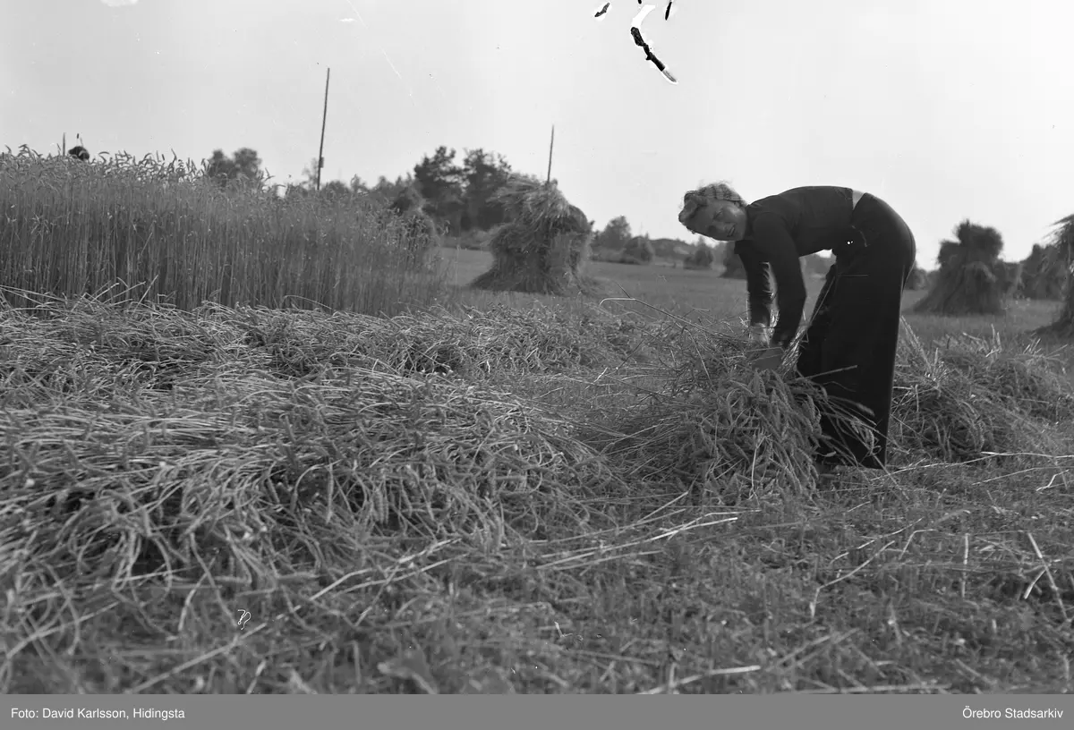 Bindning av rågkärvar i Karlstorp, 1940-tal