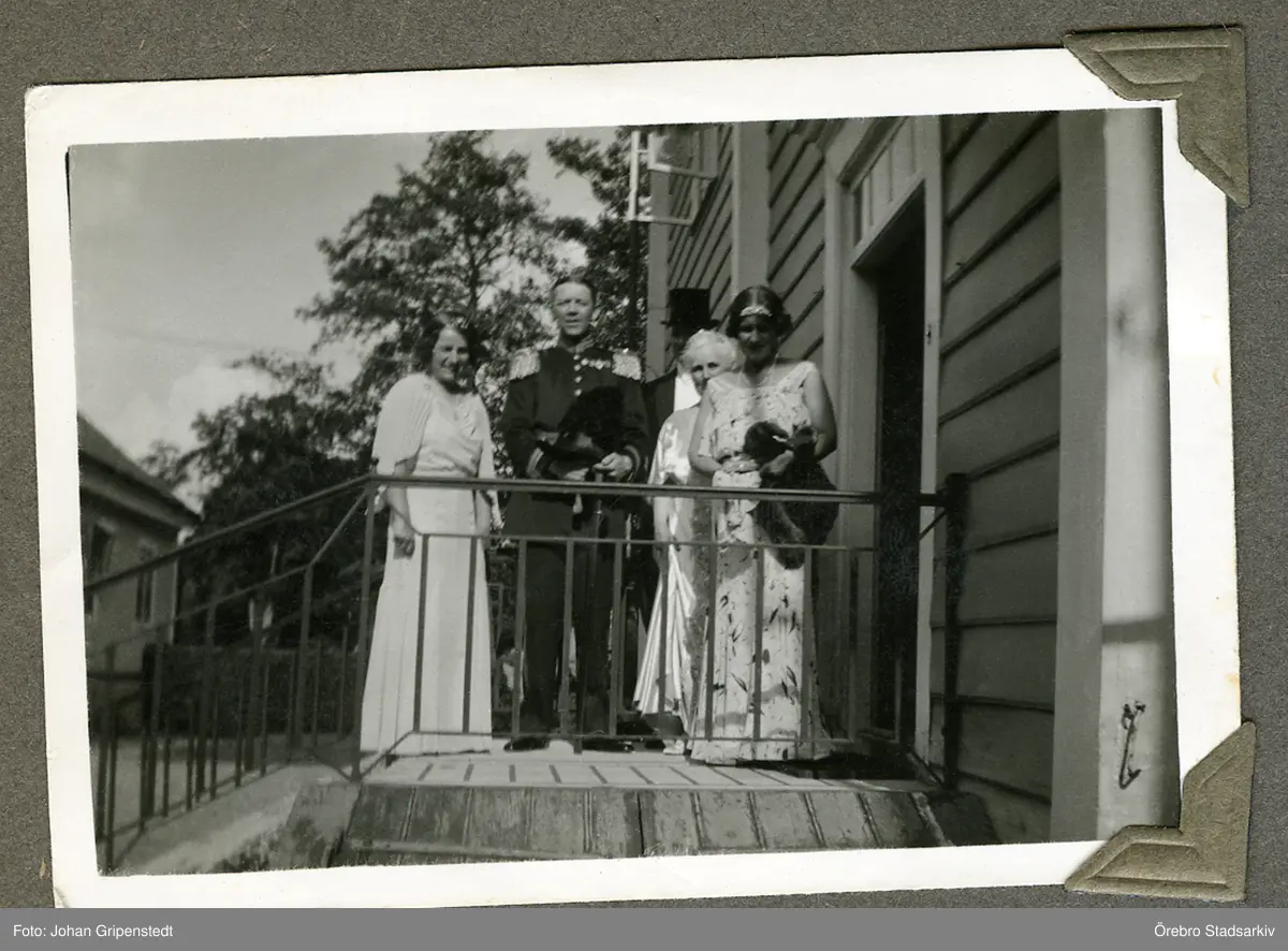 Anna och Carl Gripenstedt med gäster på Brevens bruks herrgård, 1936