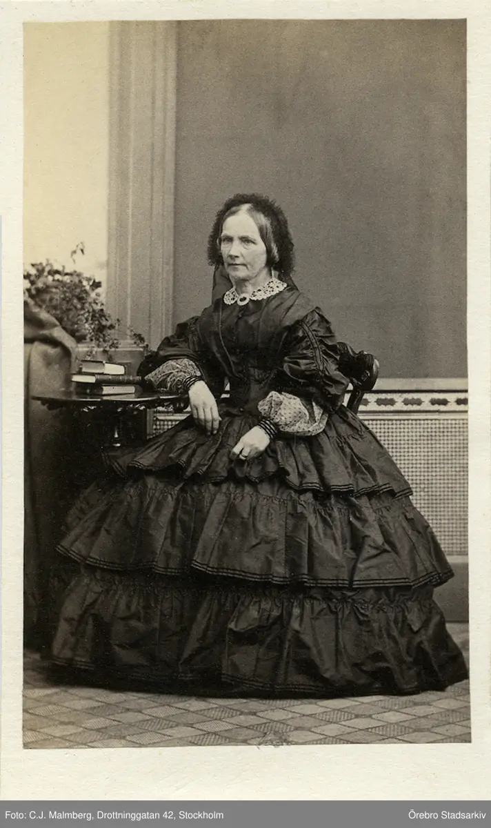Porträtt av fru Geijerstam vid bord med böcker, 1860-tal