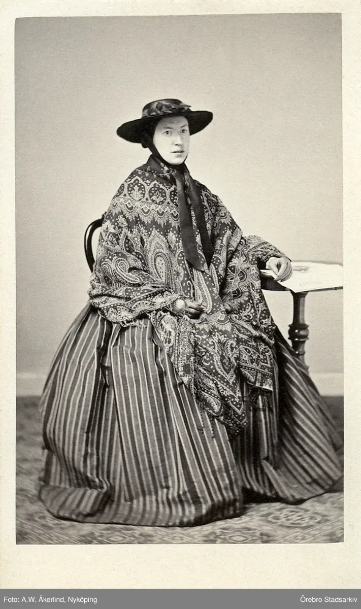 Porträtt av mamsell Rosén i sjal och hatt, ca 1875