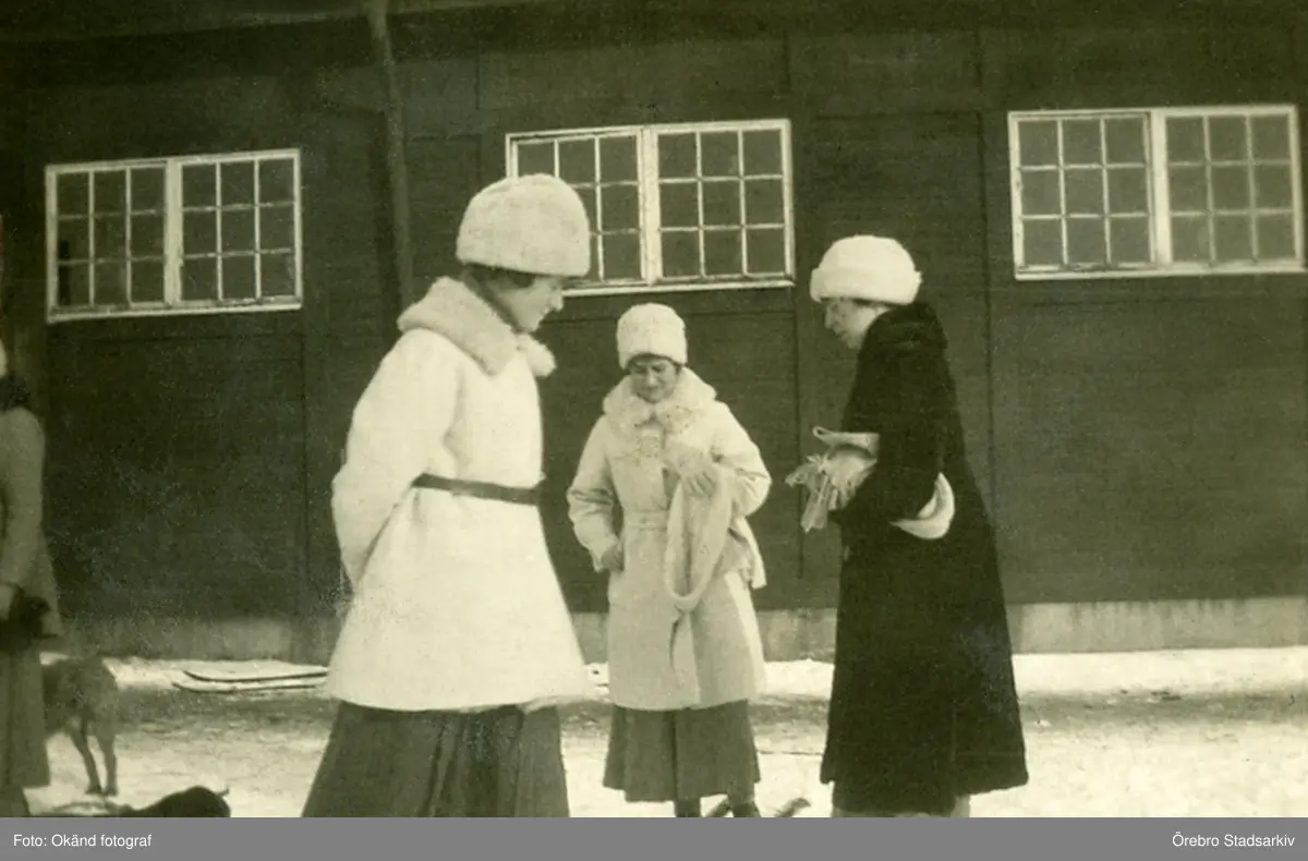 Tre damer på stallbacken på Färna herrgård, ca 1920