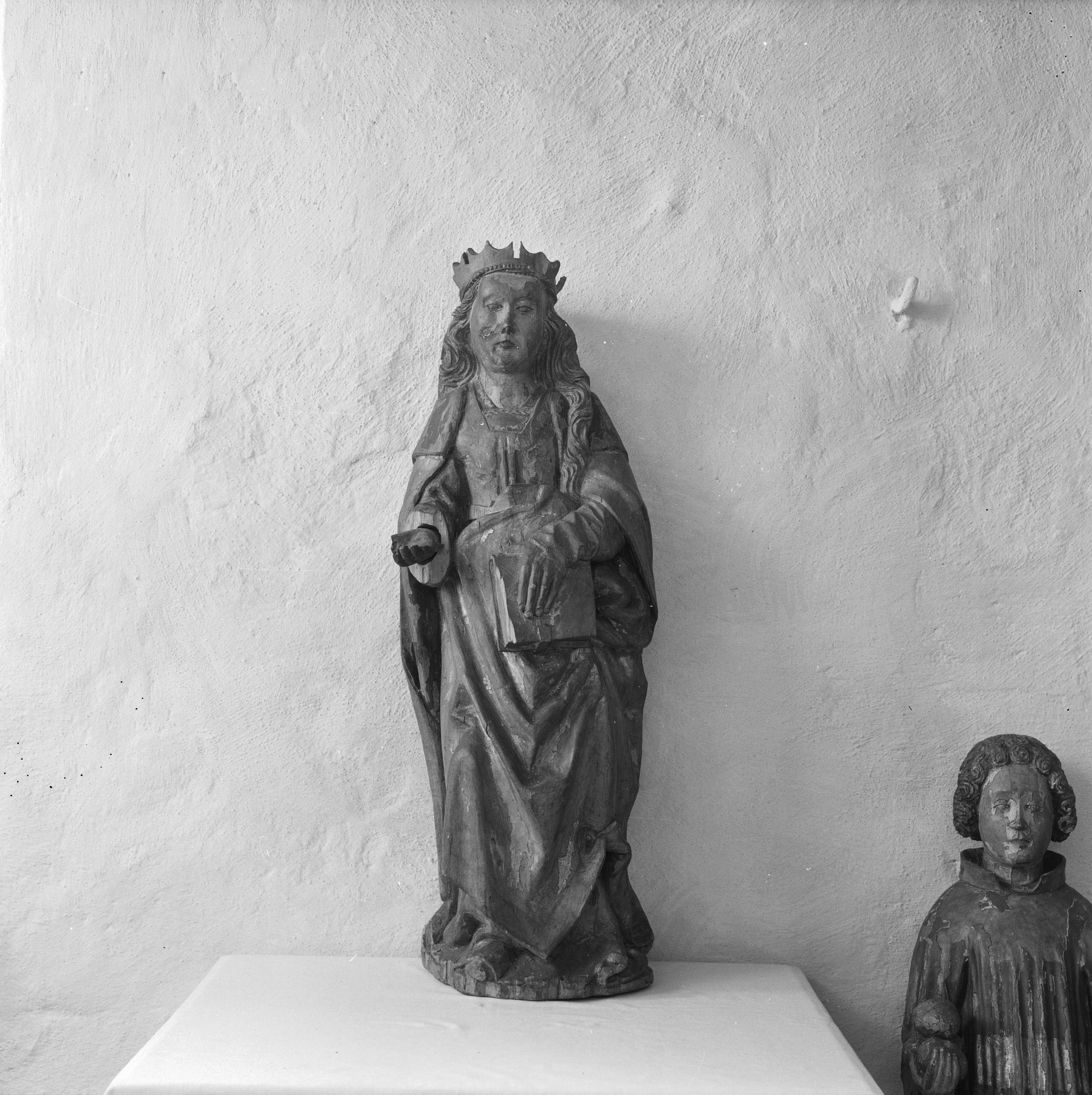 Skulptur, trä, kvinnligt helgon, från omkring 1500.