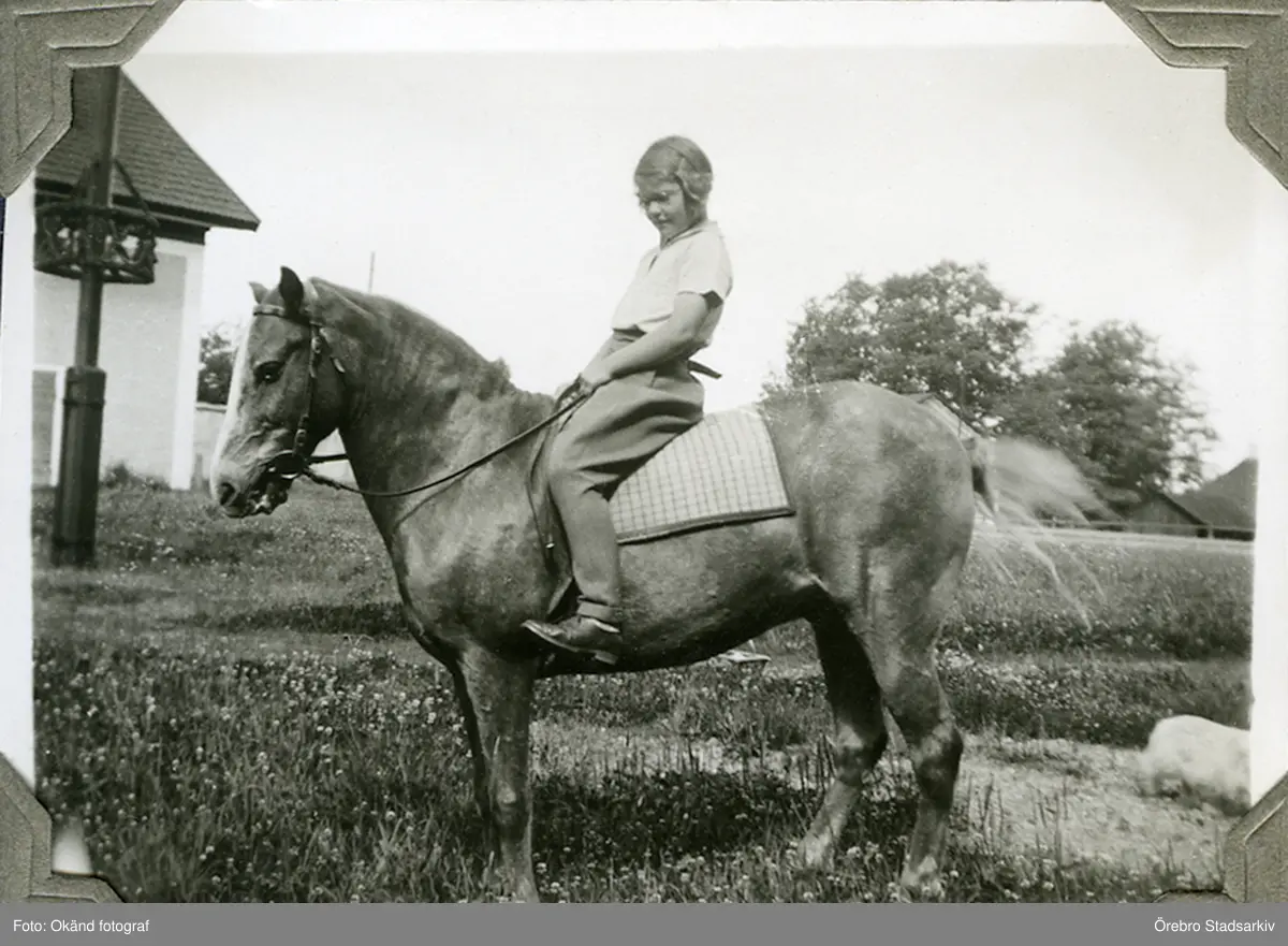 Mary Gripenstedt och hästen Petter, ca 1932
