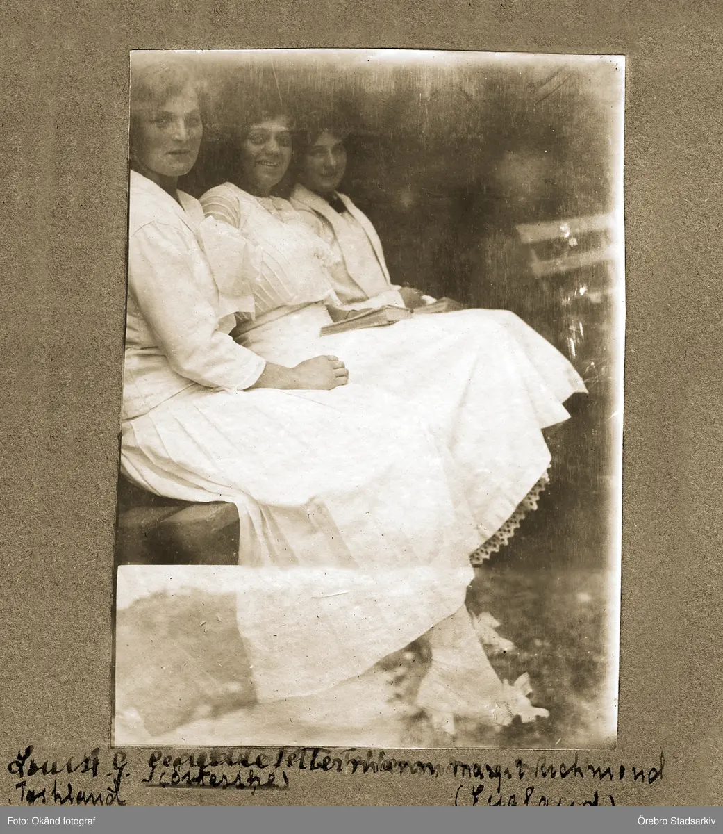 Tre kvinnor i vita klänningar läser böcker, 1918