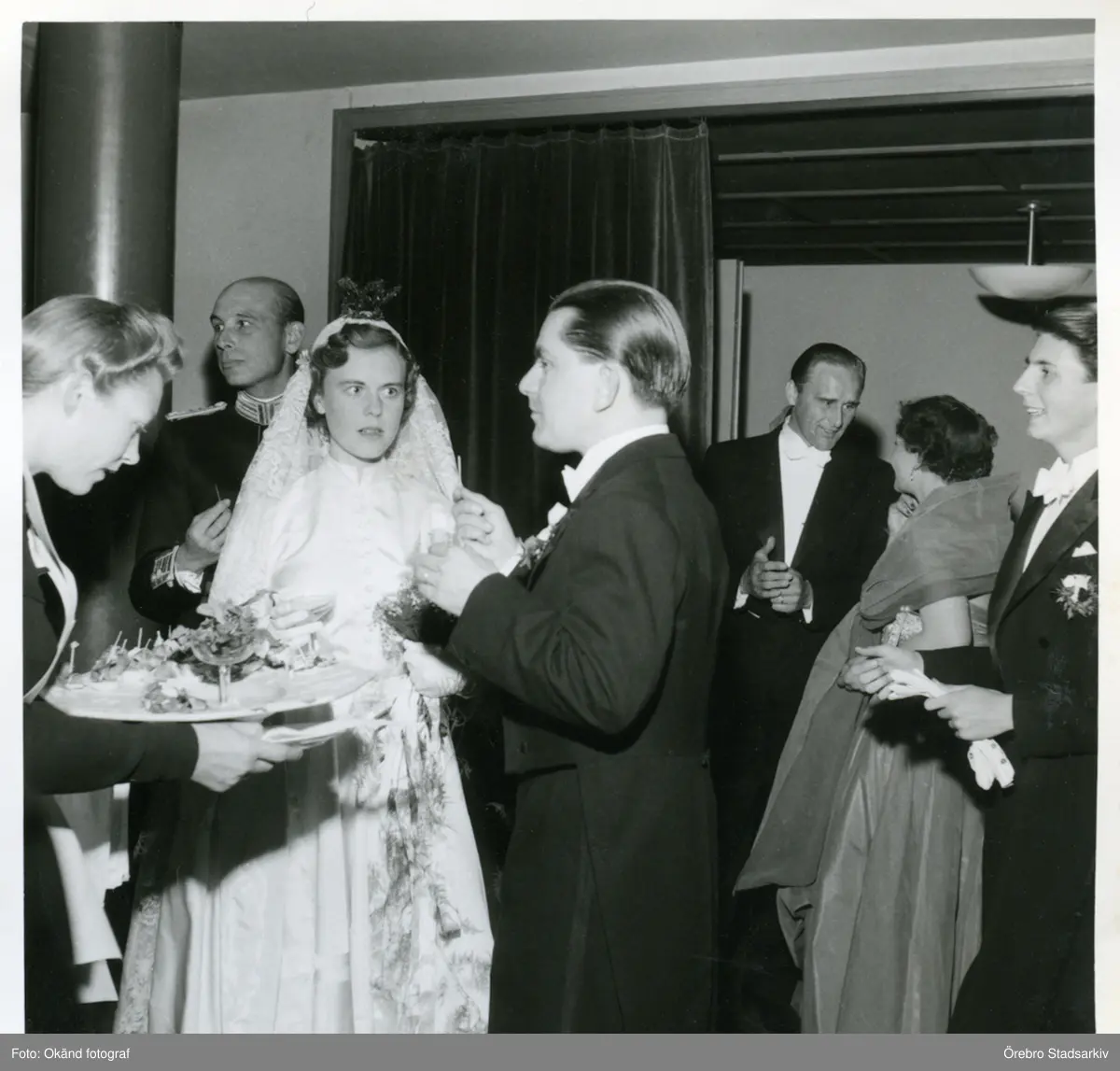 Middagsgästerna mottas med vin och snittar på Stockholms golfklubb, 1952-06-17