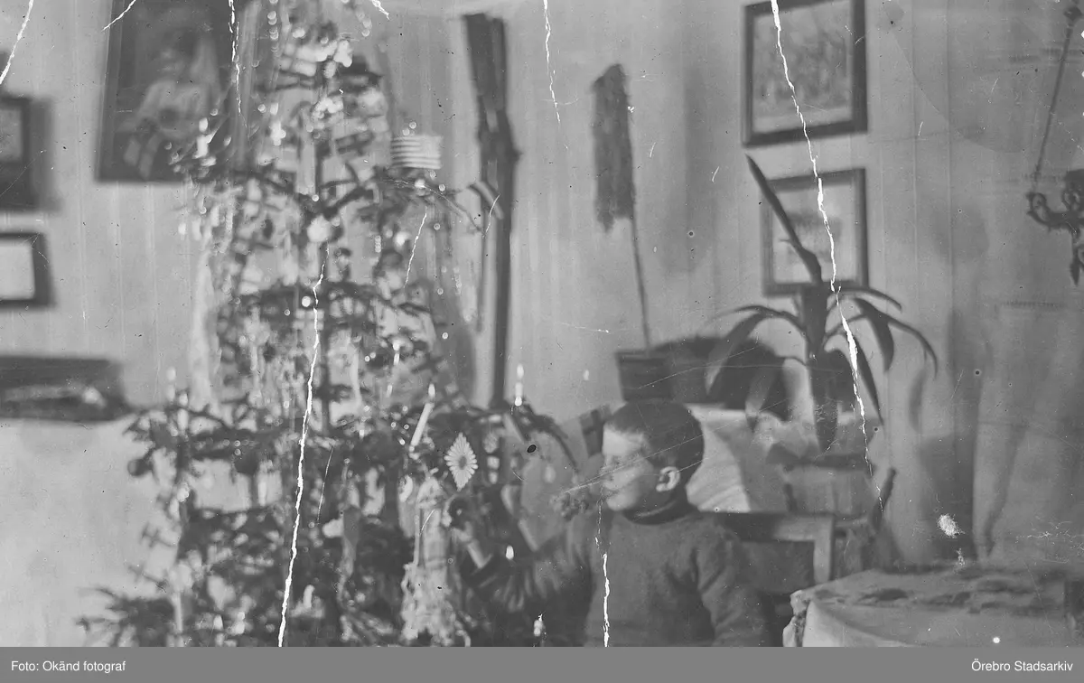 Erik Karlsson Strandin vid julgranen i Kärrgruvan i Svartå, 1918