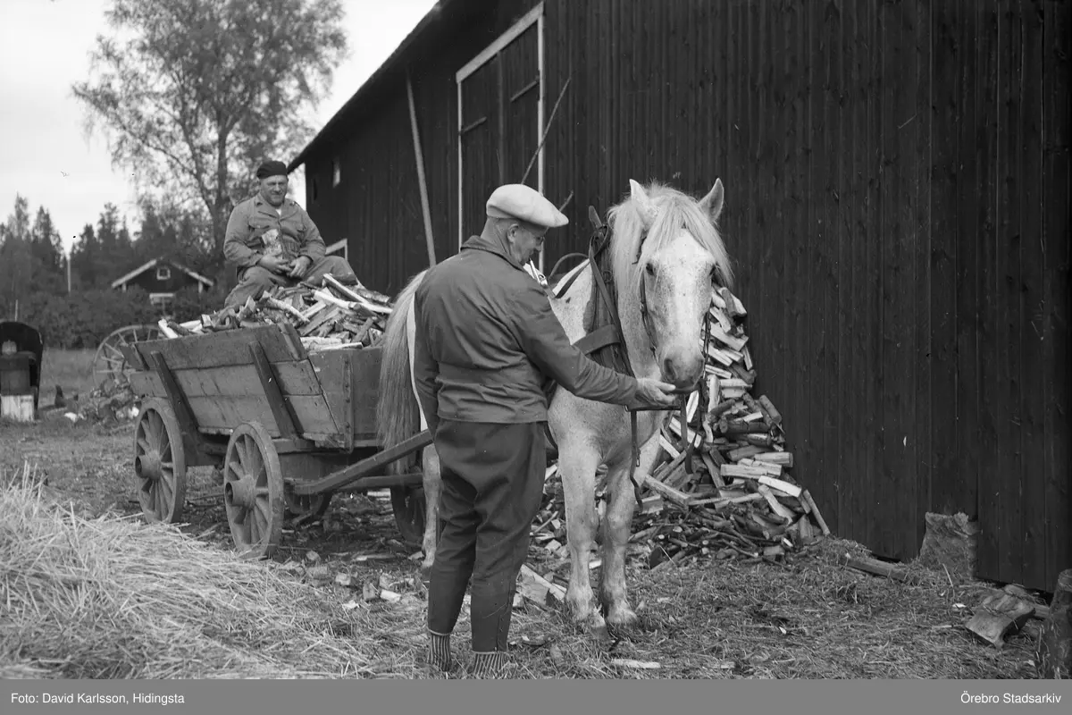 Häst med vedlass i Karlstorp, 1950-tal