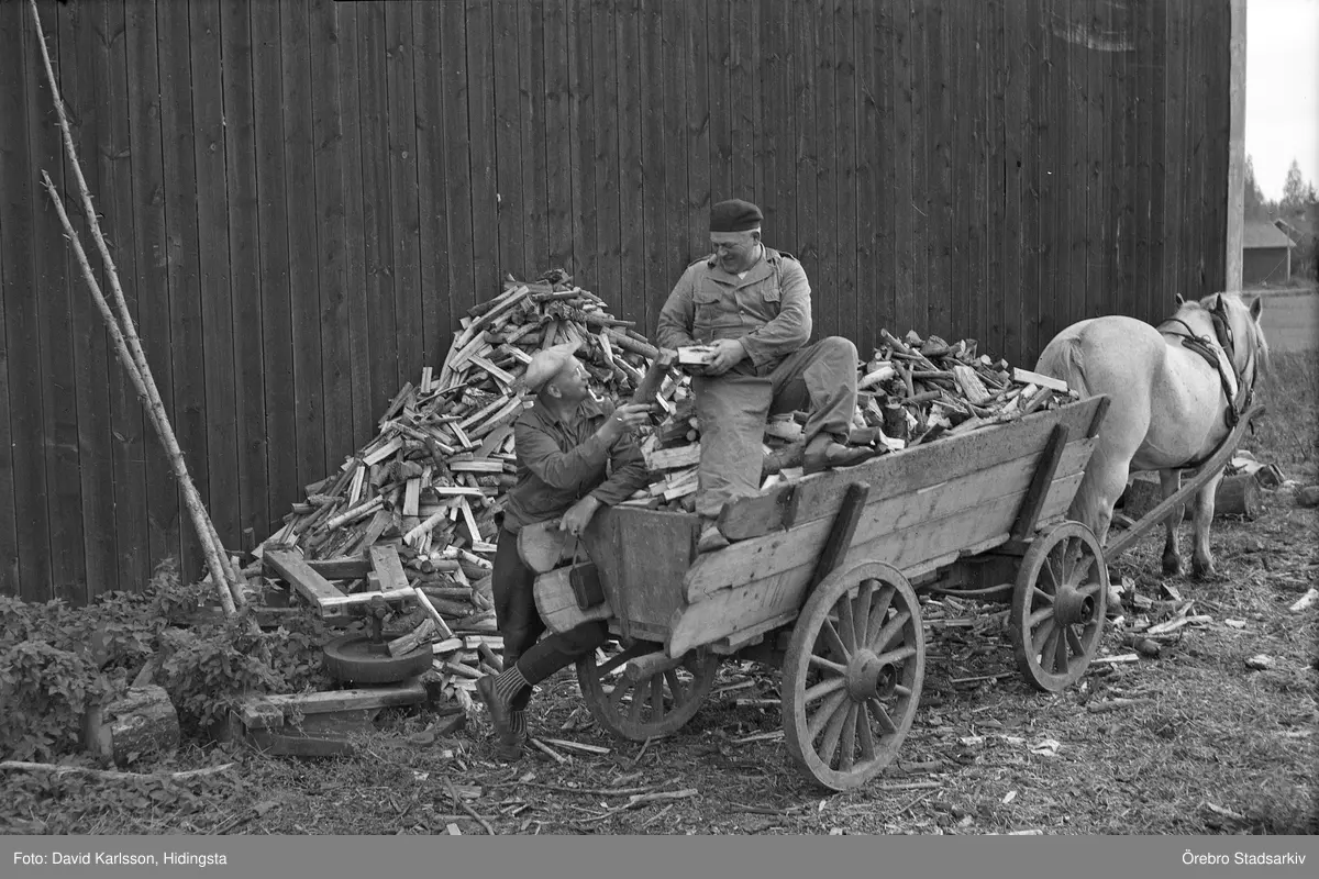 Häst med vedlass i Karlstorp, 1950-tal