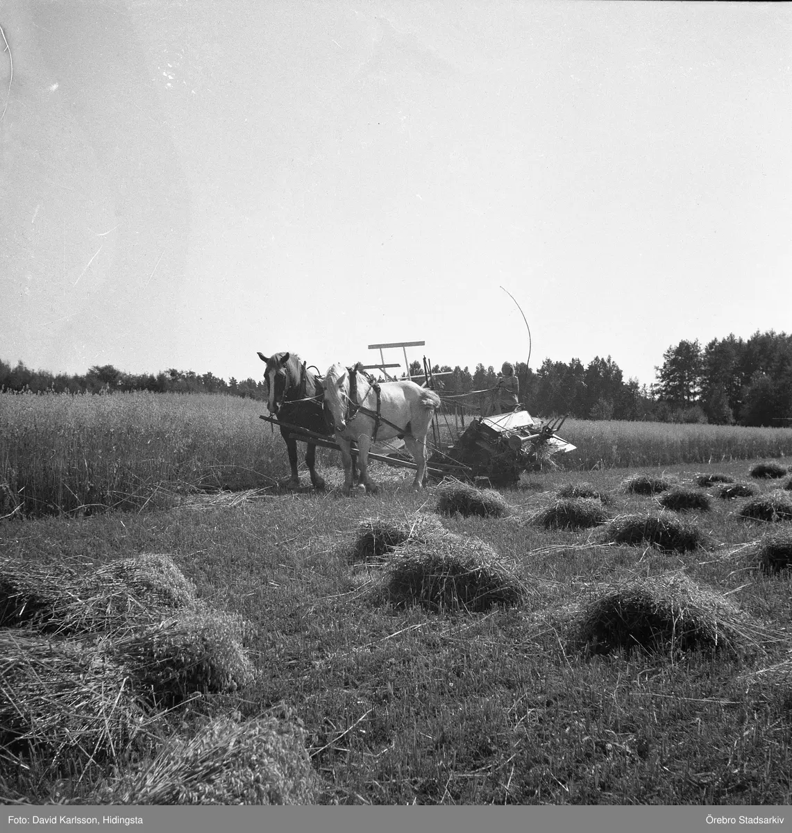 Rågskärning med självbindare i Karlstorp, 1940-tal
