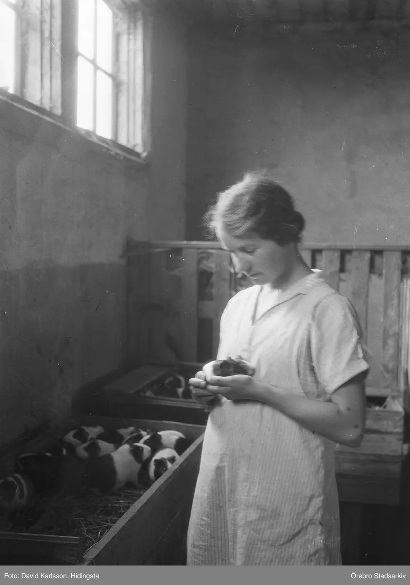 Maja med marsvin hemma på Karlstorp, 1940-tal