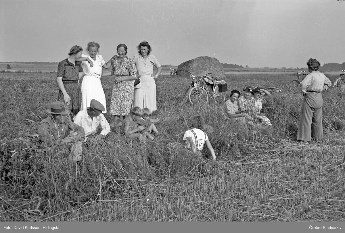 Paus i skördearbetet på Karlstorps ägor, 1940-tal