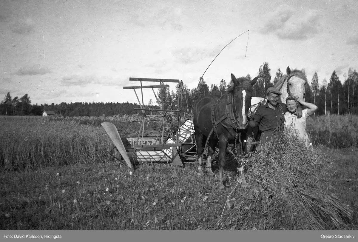 Havreskärning med självbindare i Karlstorp, 1940-tal
