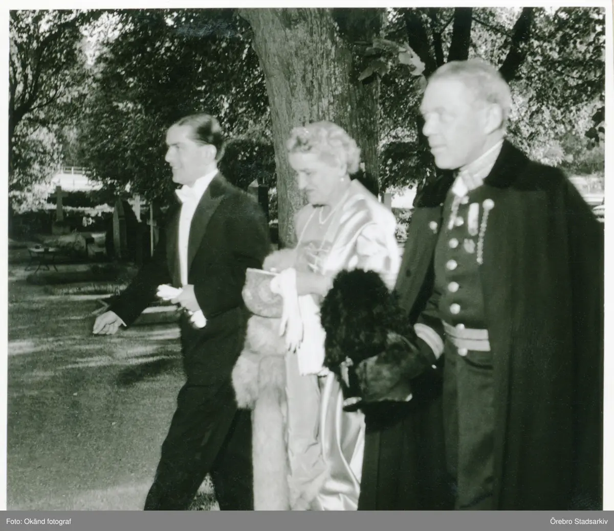 Brudgum med föräldrar anländer till Danderyds kyrka, 1952-06-17