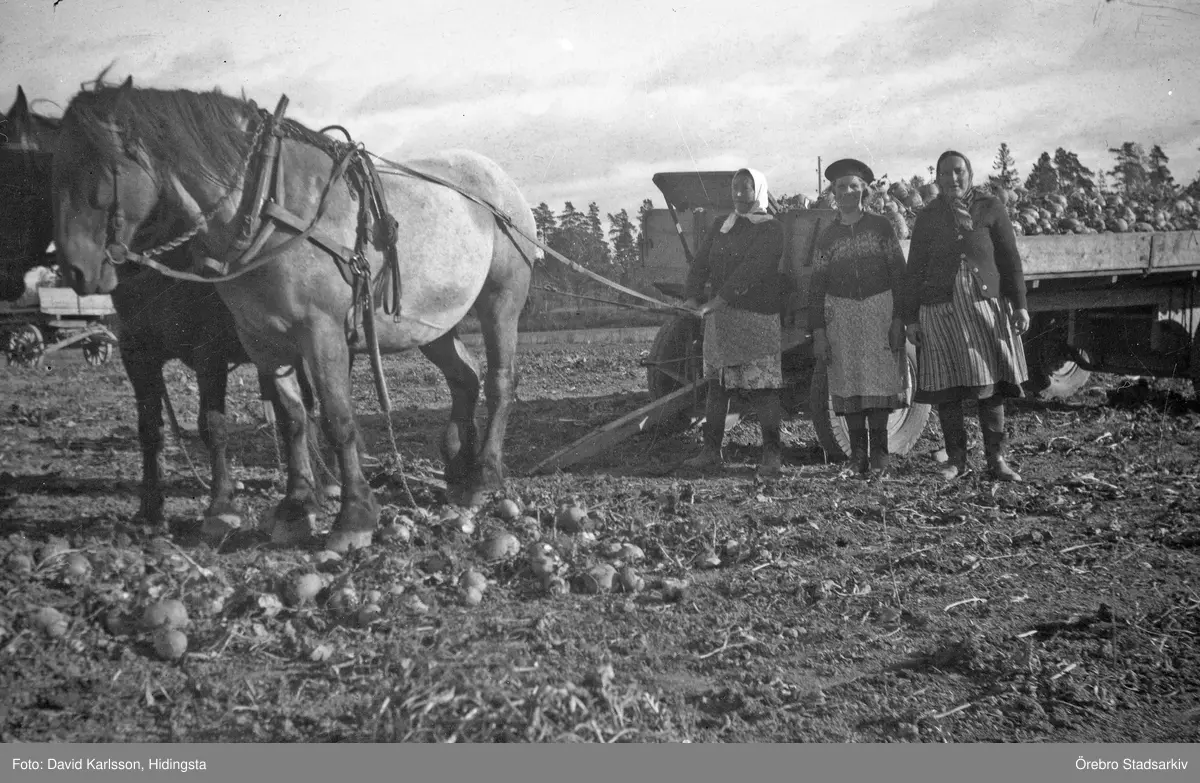 Skörd av kålrötter i Karlstorp, 1940-tal