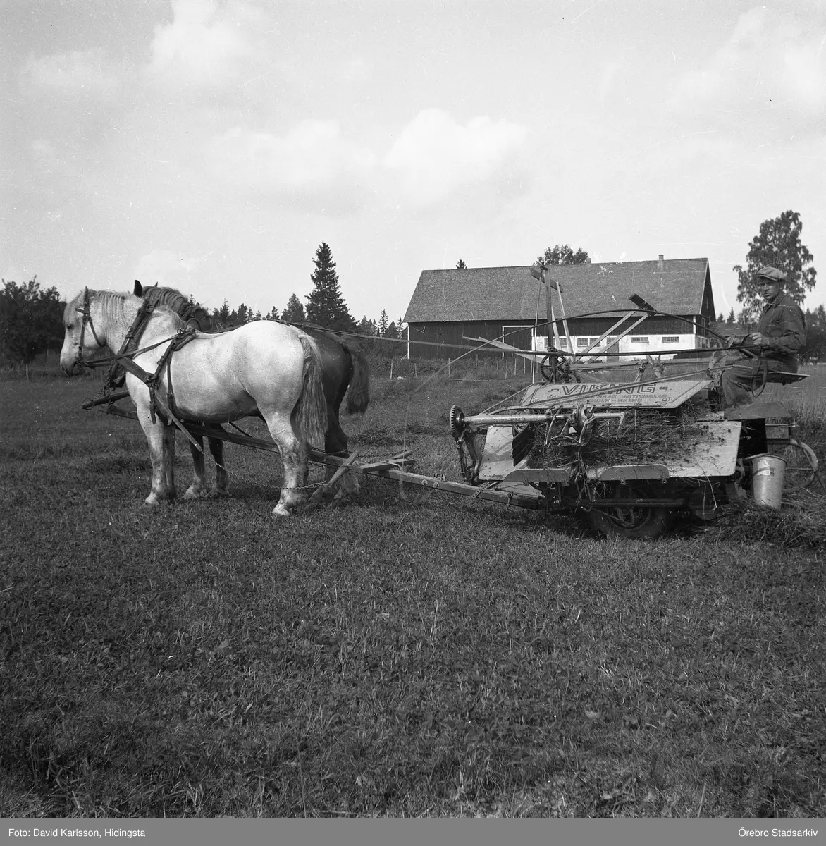 David Karlsson med självbindare på hemmaplan, 1940-tal