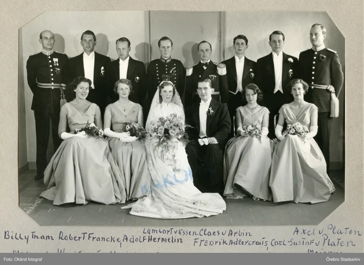 Marskalker och tärnor vid bröllopfest på Stockholms golfklubb, 1952-06-17