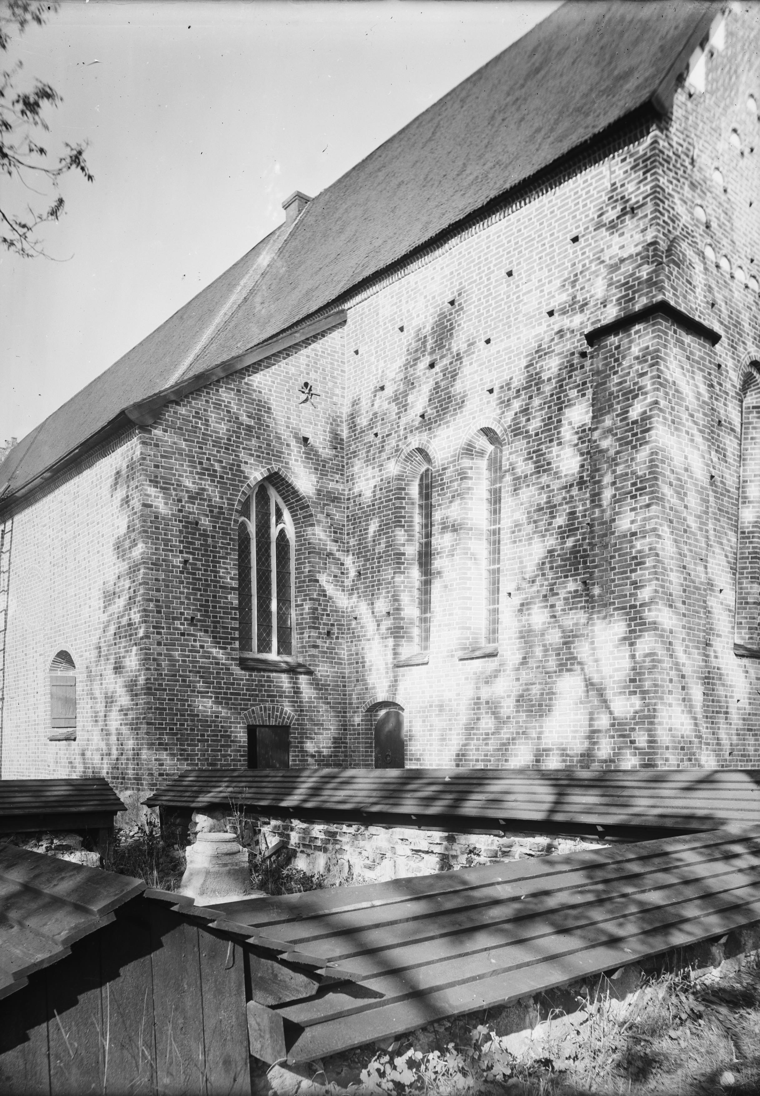 Kyrkan mot sydöst, södra sidoskeppet och koret.