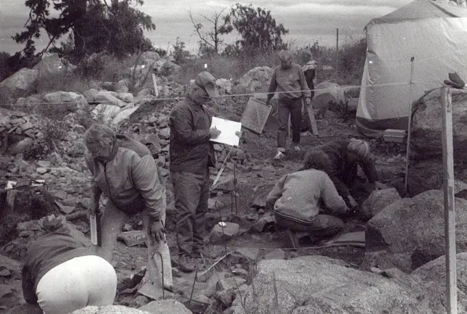 Undersökningar på Broberg i Husby-Långhundra sommaren 1983.