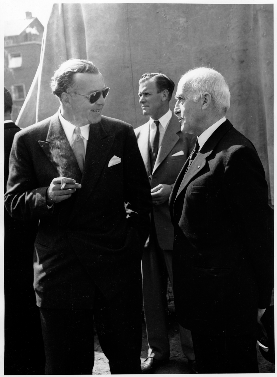 Invigning av vägbro mellan Bergnäset och Luleå. Hans Kungliga Höghet Prins Bertil i samtal under invigningen.