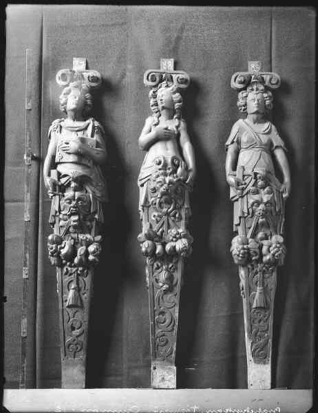 Beskrivning: Korskranket, skulpterade pilastrar.
