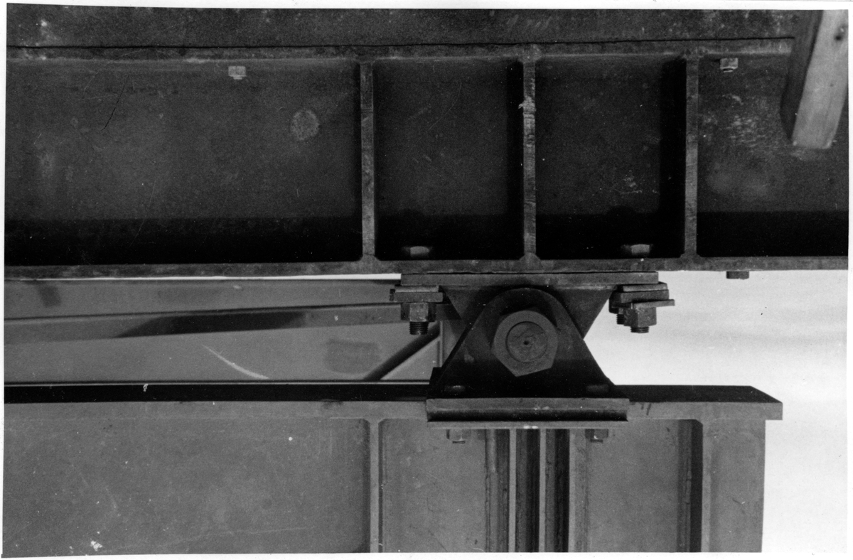 Vägbro över Hammerdalssundet. Tryckpress vid bron. Lager på släde för utdragning av bågspann.