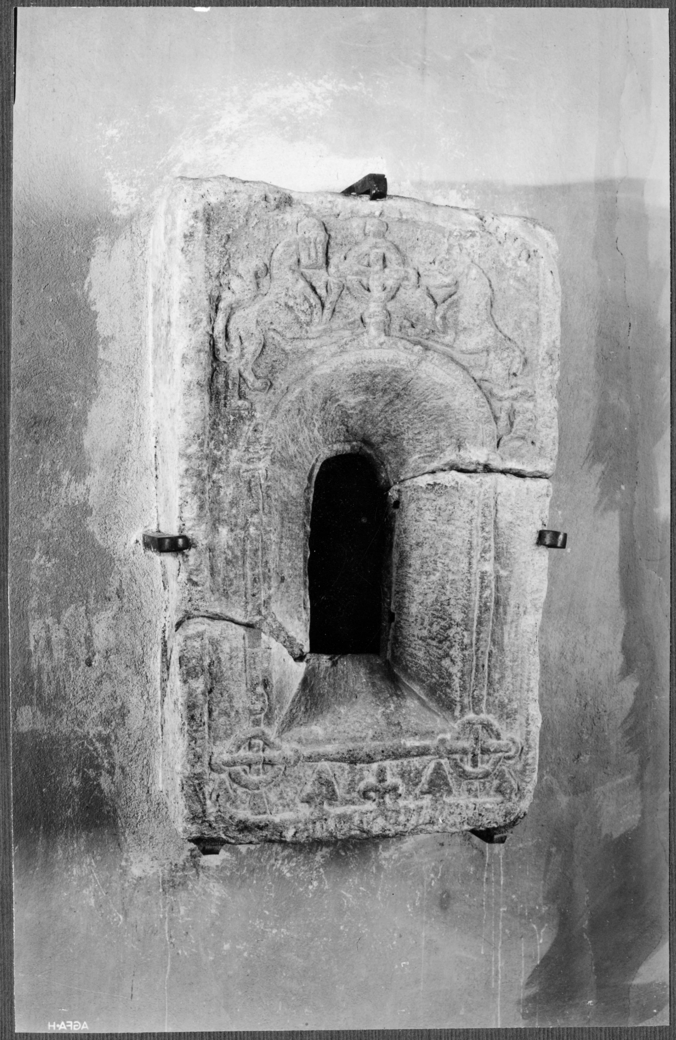 Fönsterinramning av sandsten från Gränna gamla kyrka.