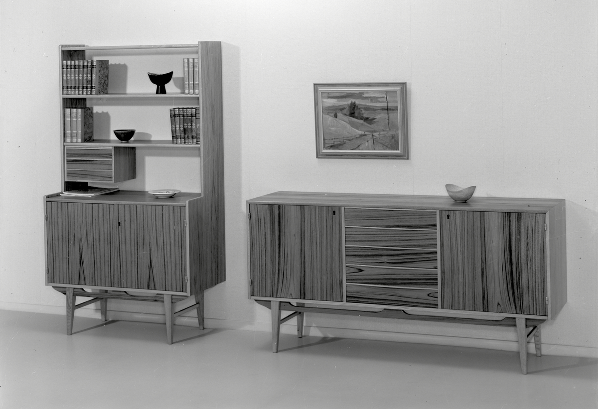 Bokhylla och sideboard