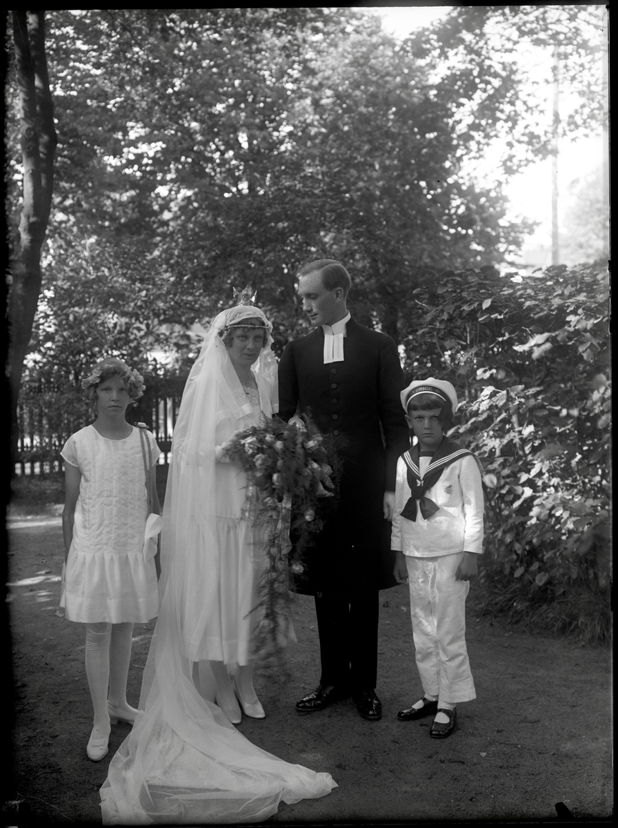 Brudpar med flicka och pojke